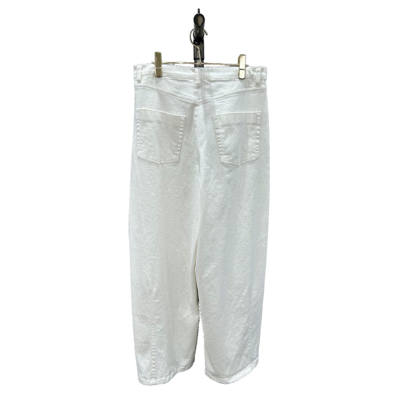 【ご予約 ayane】 836624 ホワイトデニムバレルレッグペイント加工パンツ