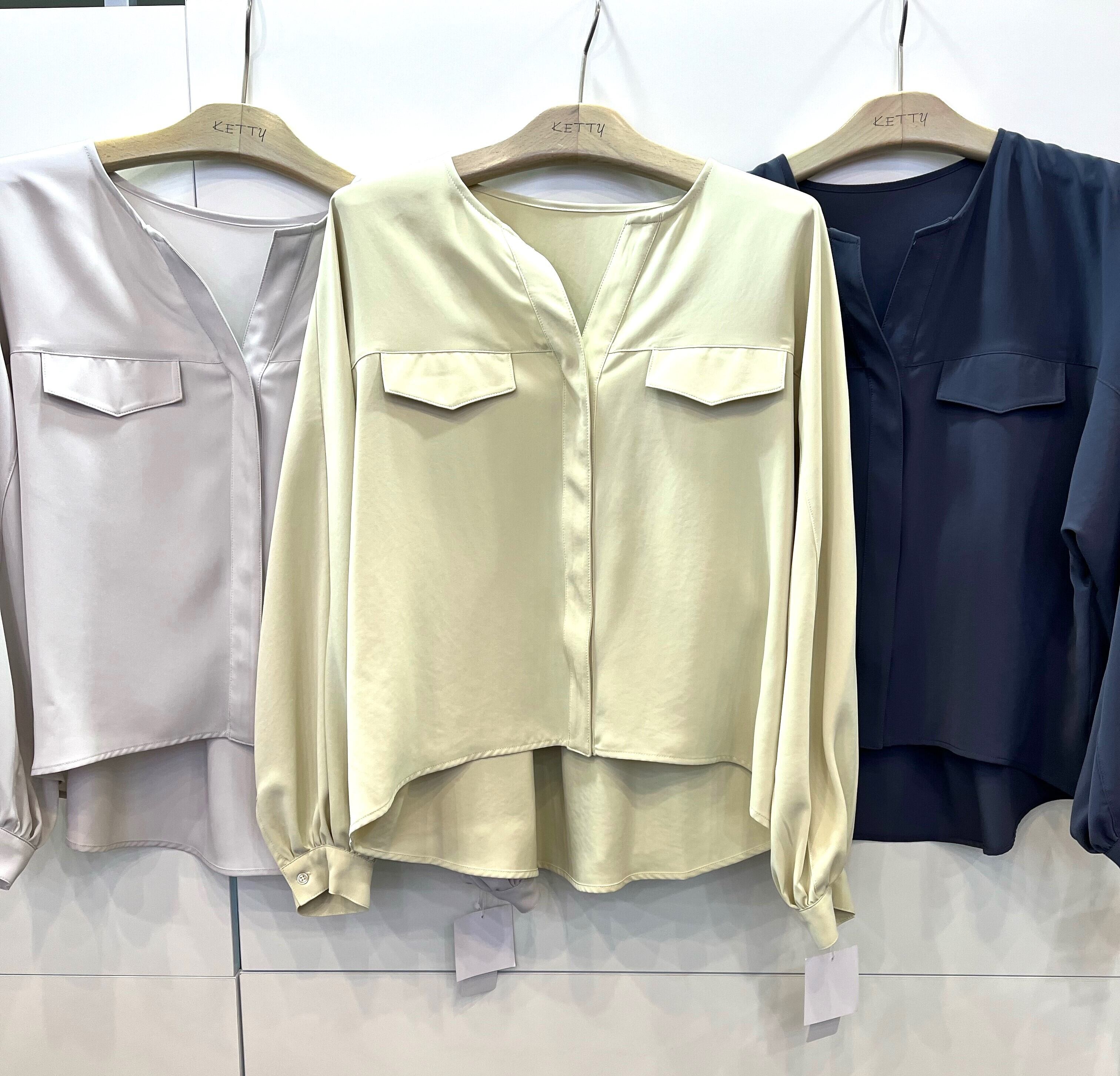 シェリーサテン比翼シャツ